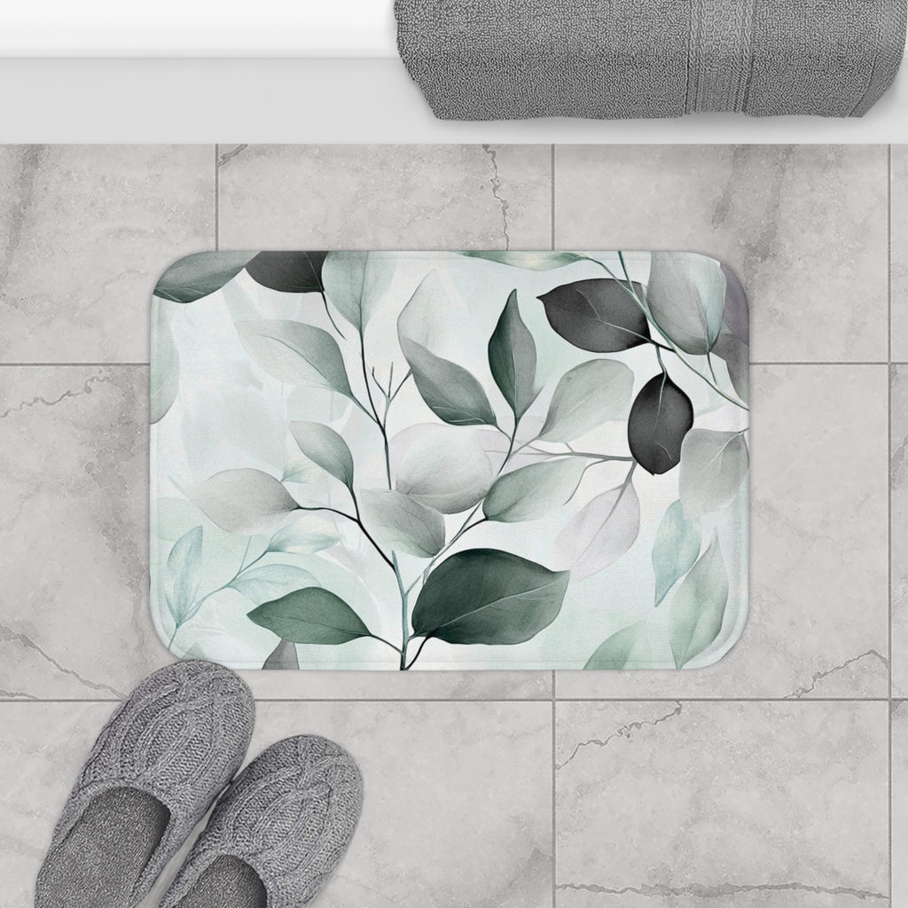 Floral Bath Mat | Sage Green Grey Leaves Kitchen Mat