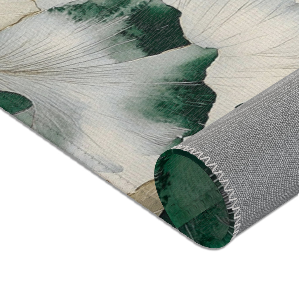 Floral Large Area Rug | Green Gingko Leaves Watercolor Rug