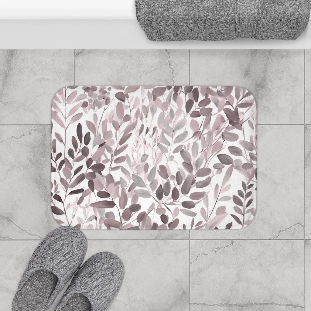 Floral Leaves Bath Mat | Grey Taupe Kitchen Mat