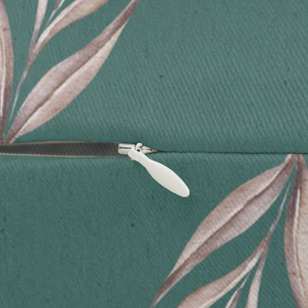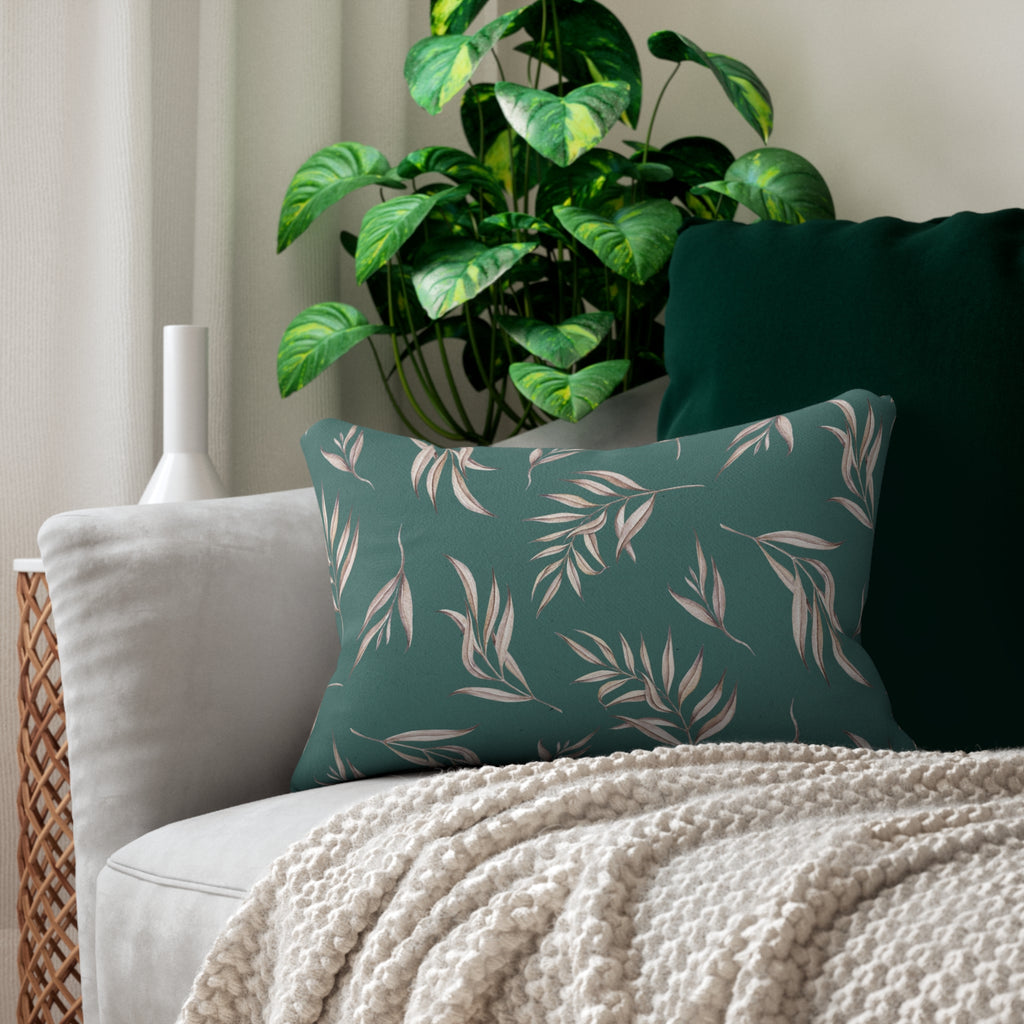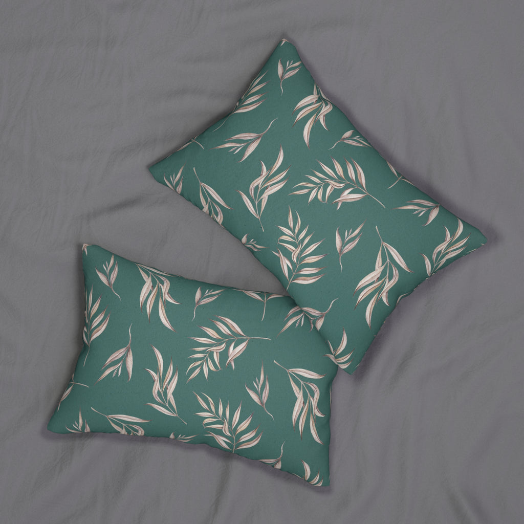 Floral Lumbar Pillow | Teal Green Beige Leaves