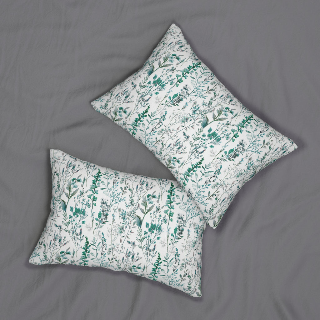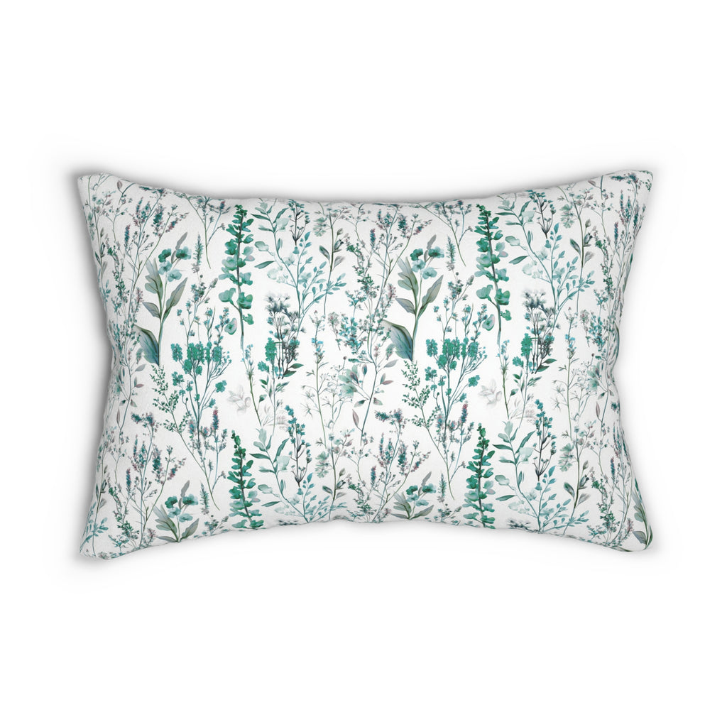 Floral Lumbar Pillow | Teal Green White Wildflowers
