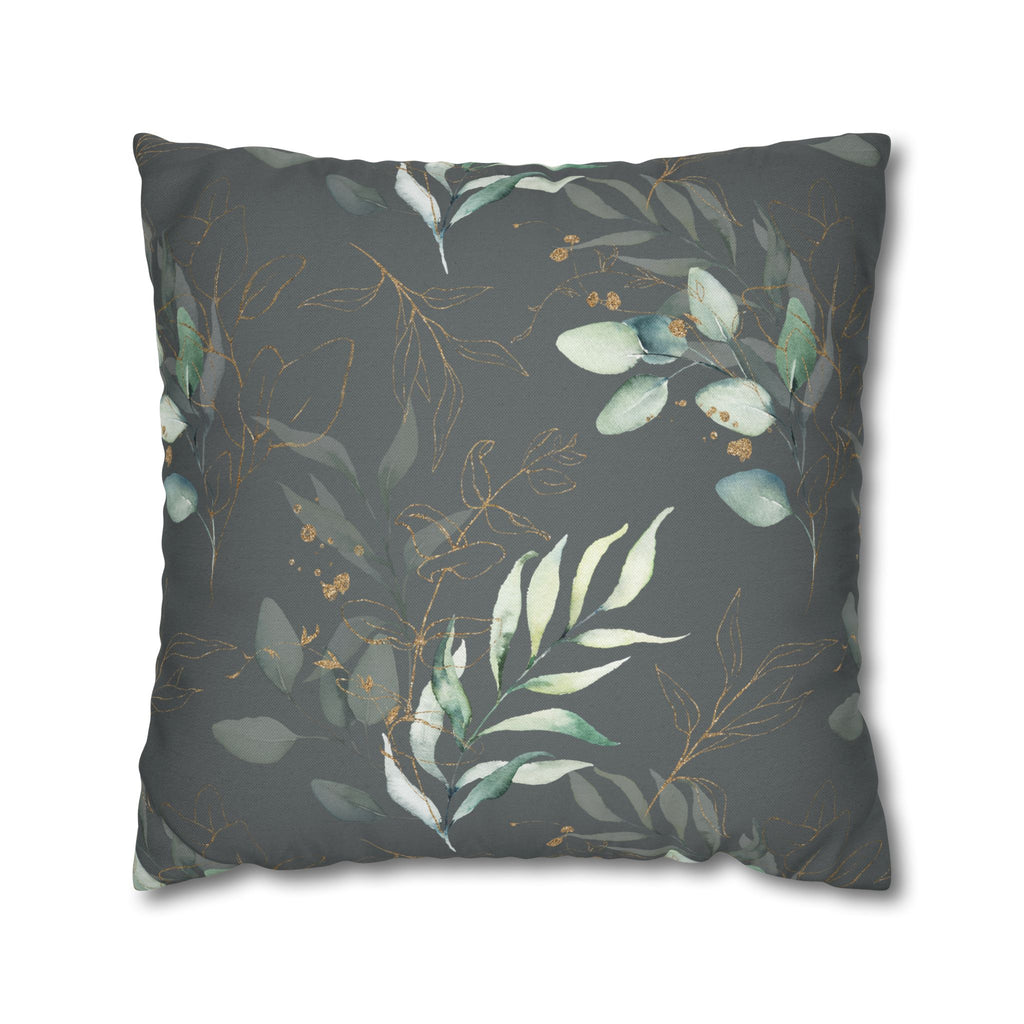 Floral Pillow Cover | Dark Grey Sage Green Monstera Tropical Leaves