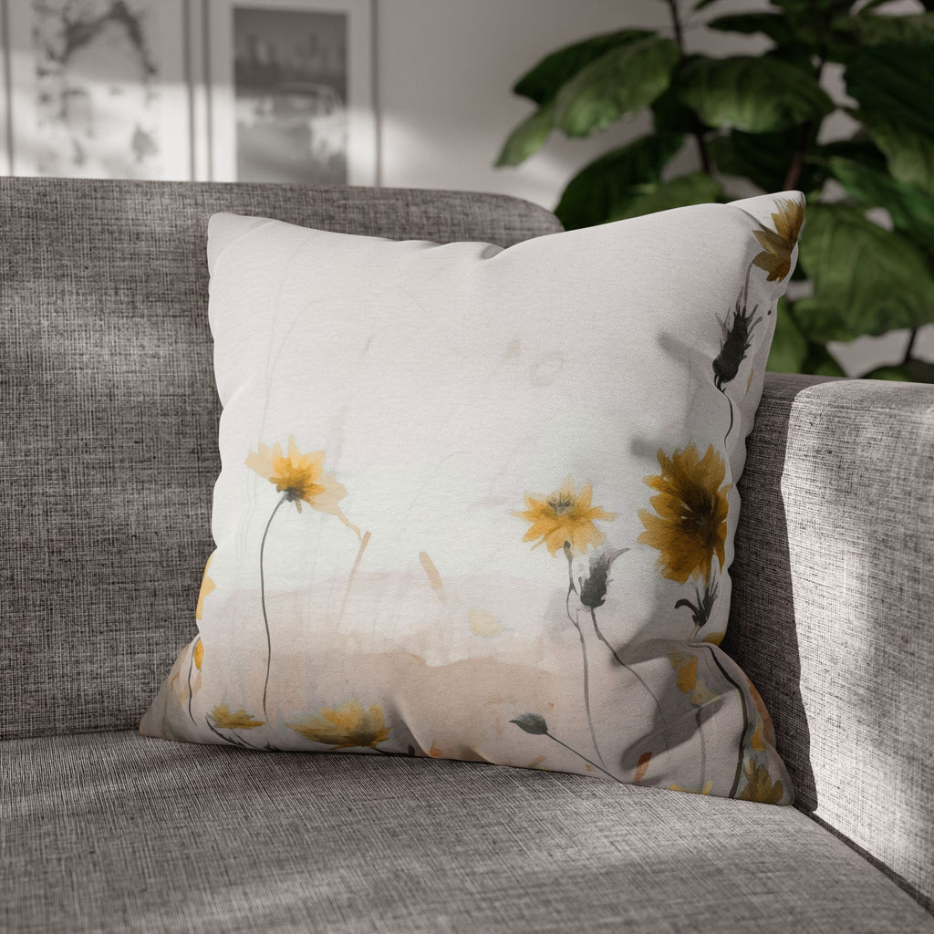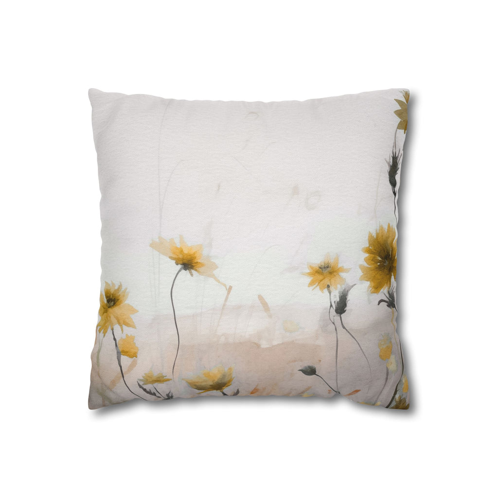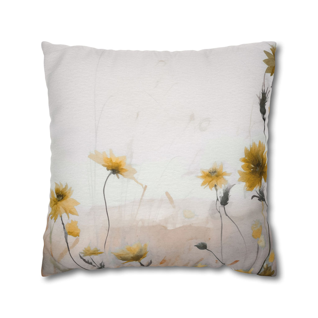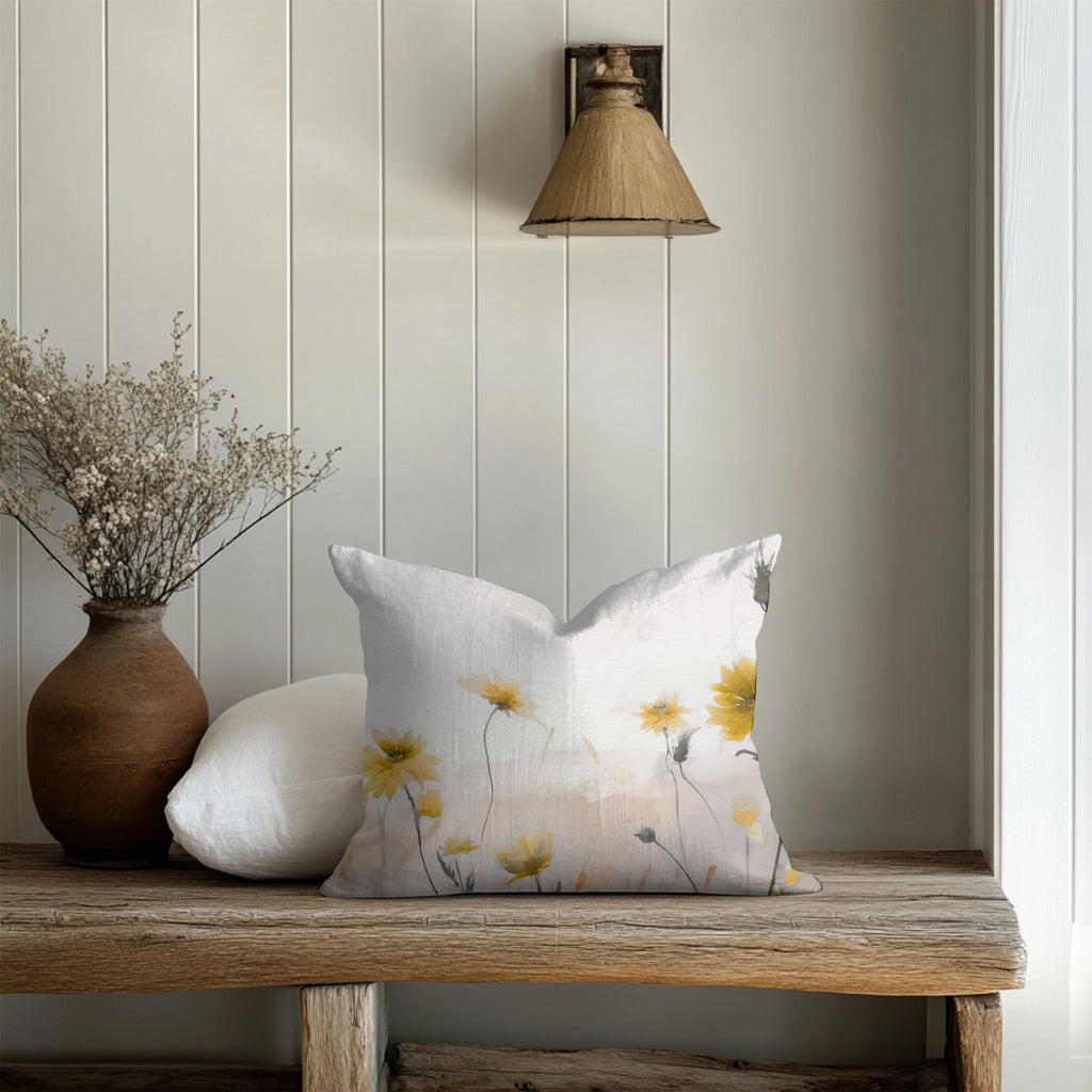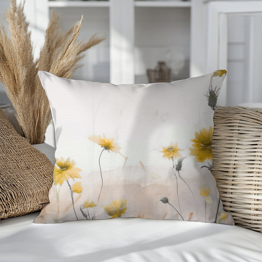 Floral Pillow Cover | Meadow Yellow Wildflowers Beige