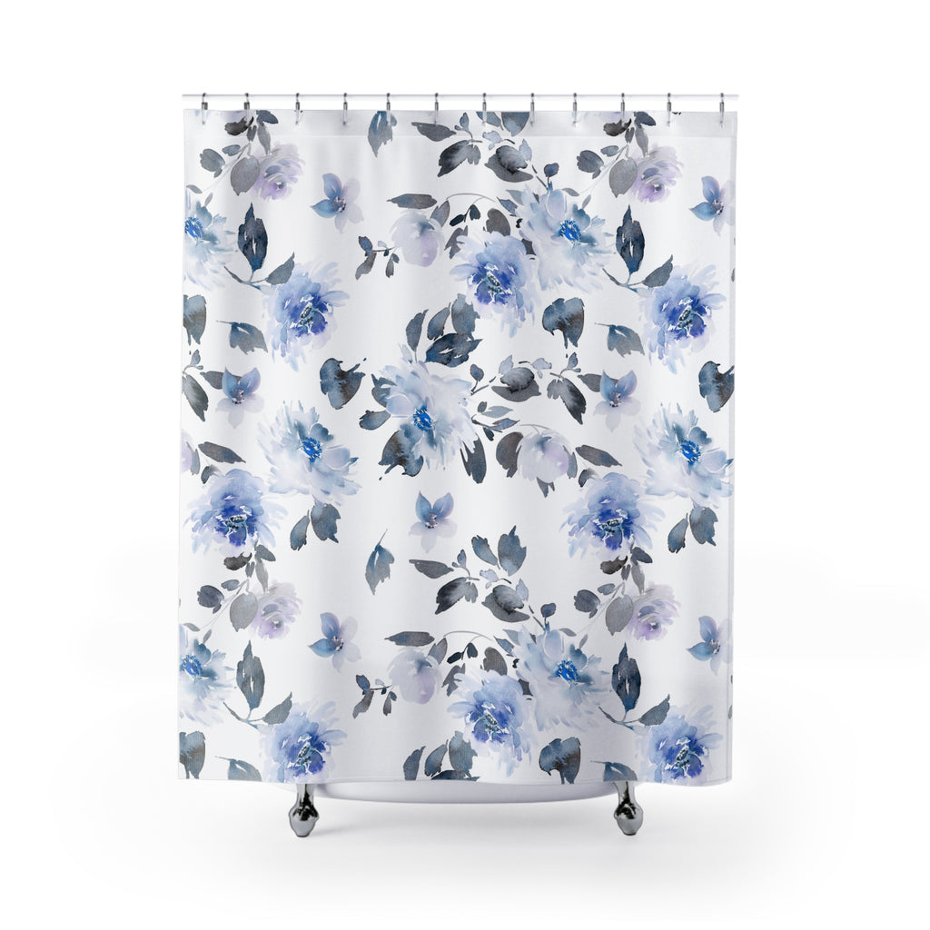 Floral Shower Curtain | Blue Grey White Bathroom Decor