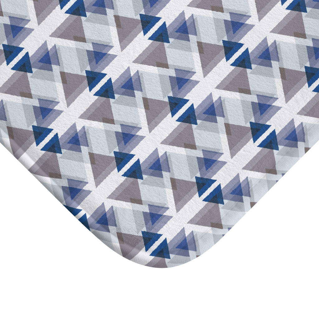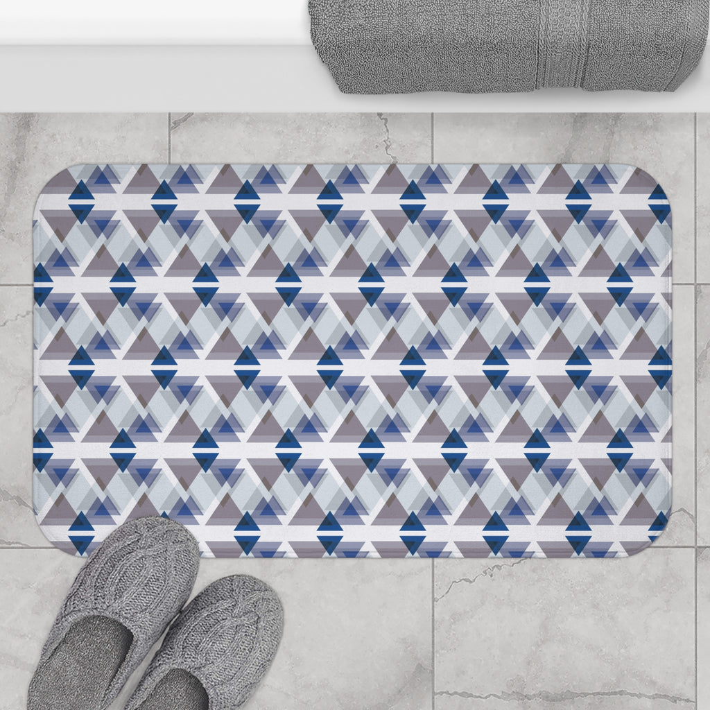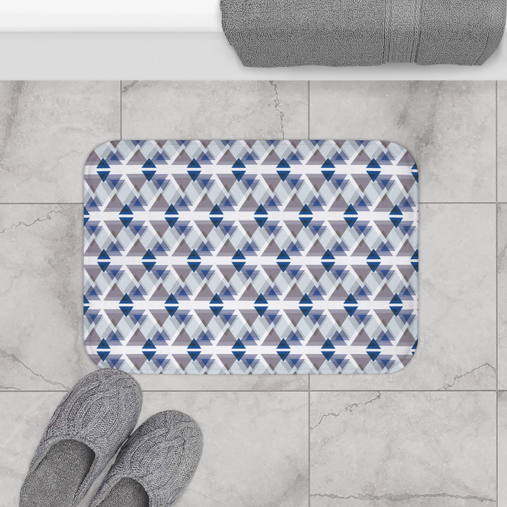 Geometric Bath Mat | Blue White Taupe Kitchen Mat