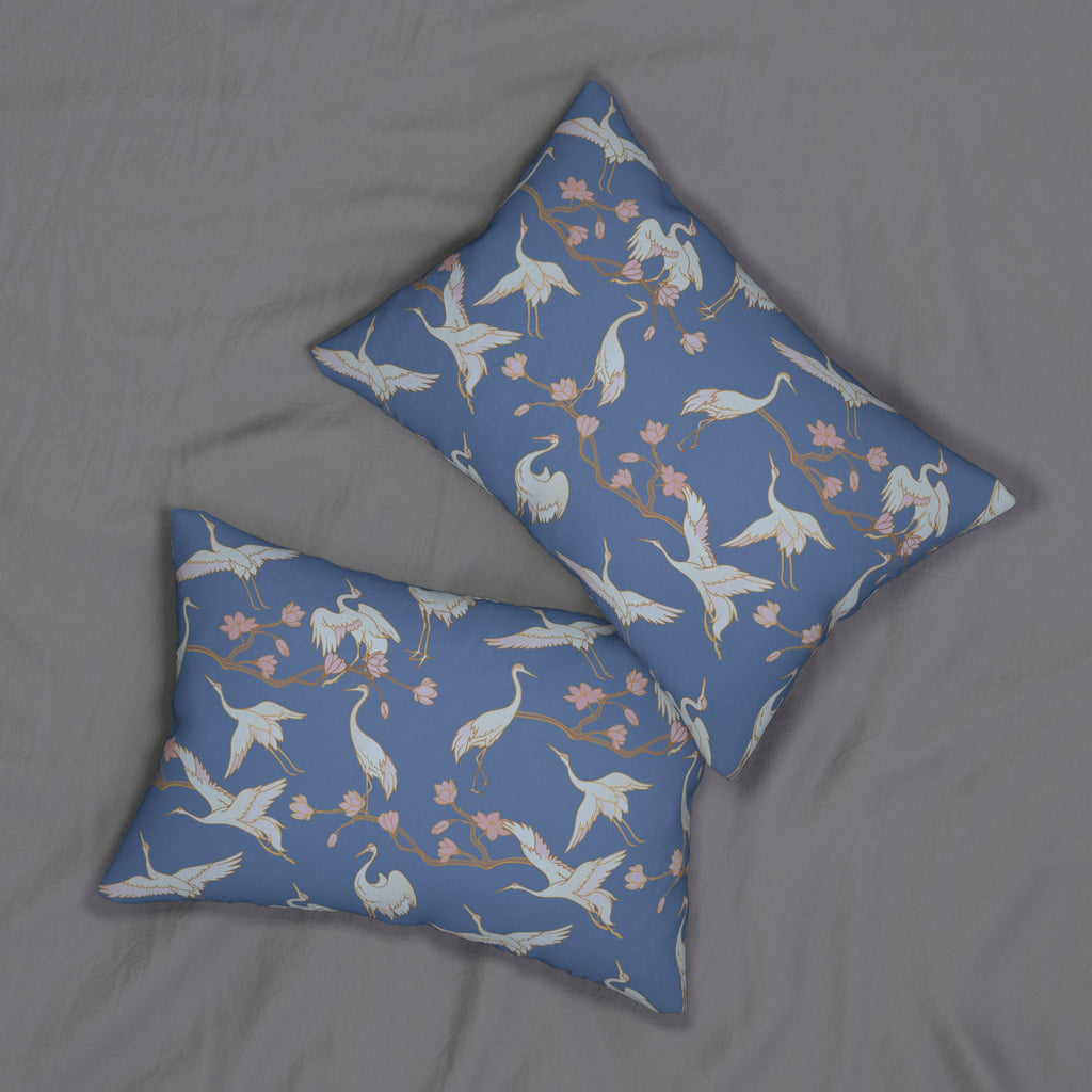 Japanese Lumbar Pillow | Pale Denim Blue, Crane Stork Birds
