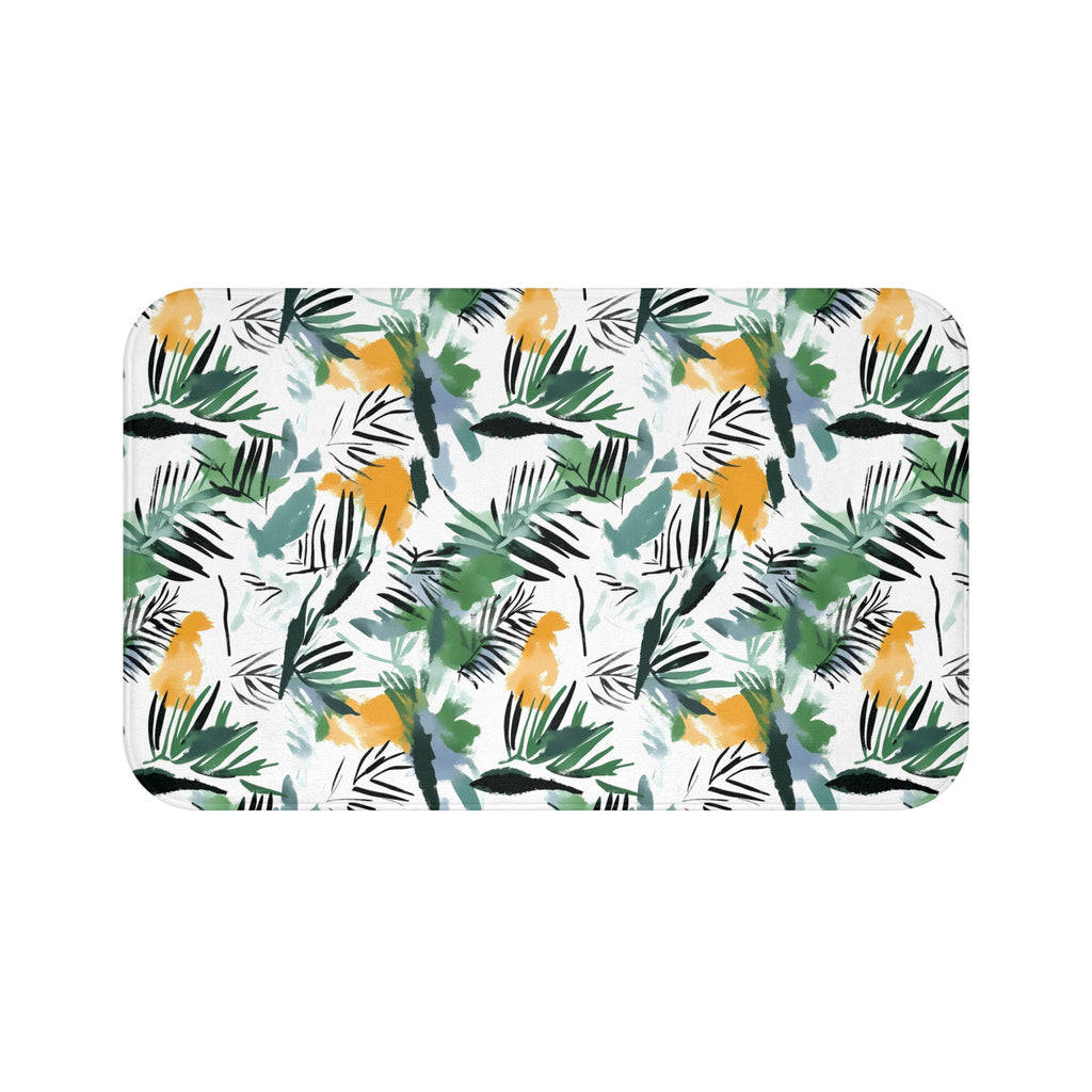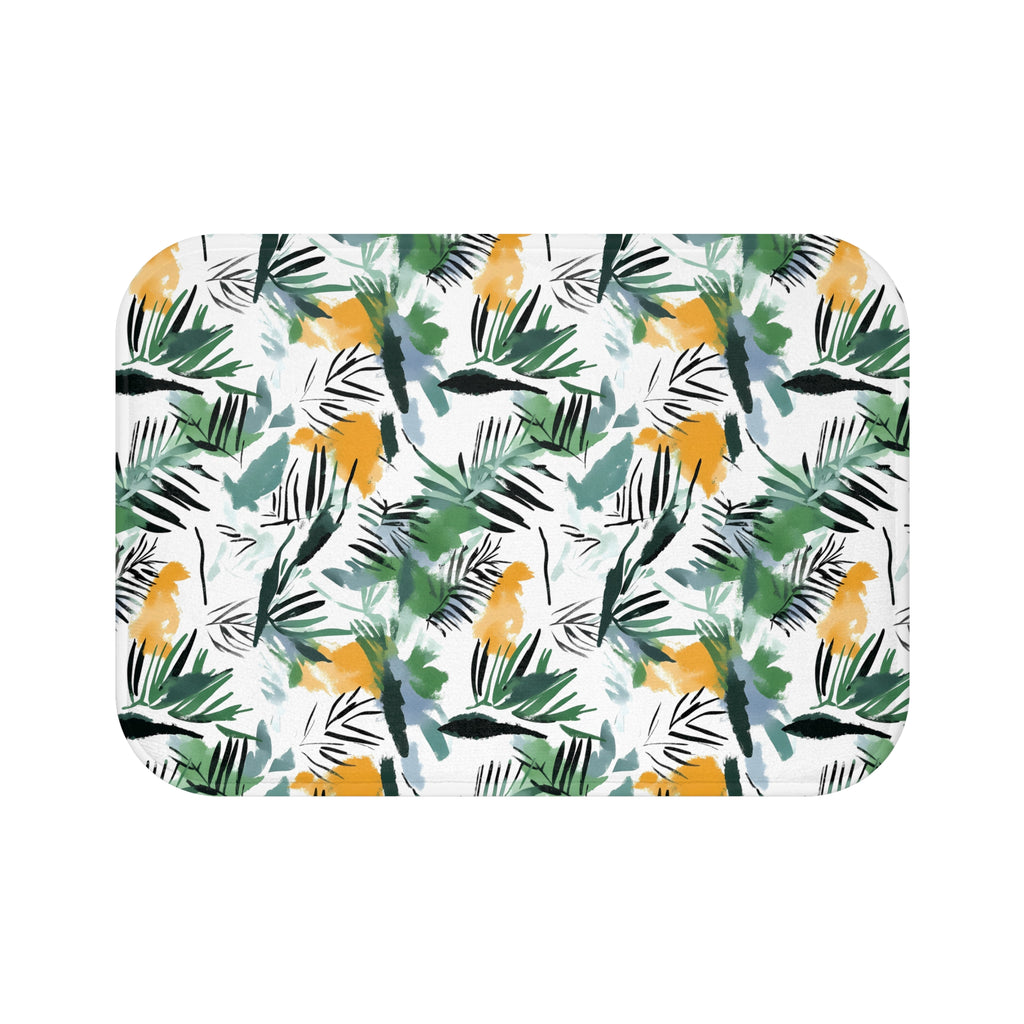 Jungle Bath Mat | White Green Yellow Leaves Floral Kitchen Mat