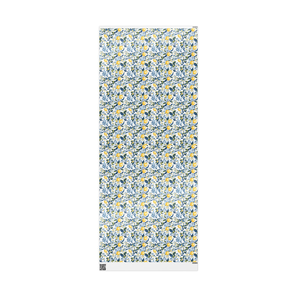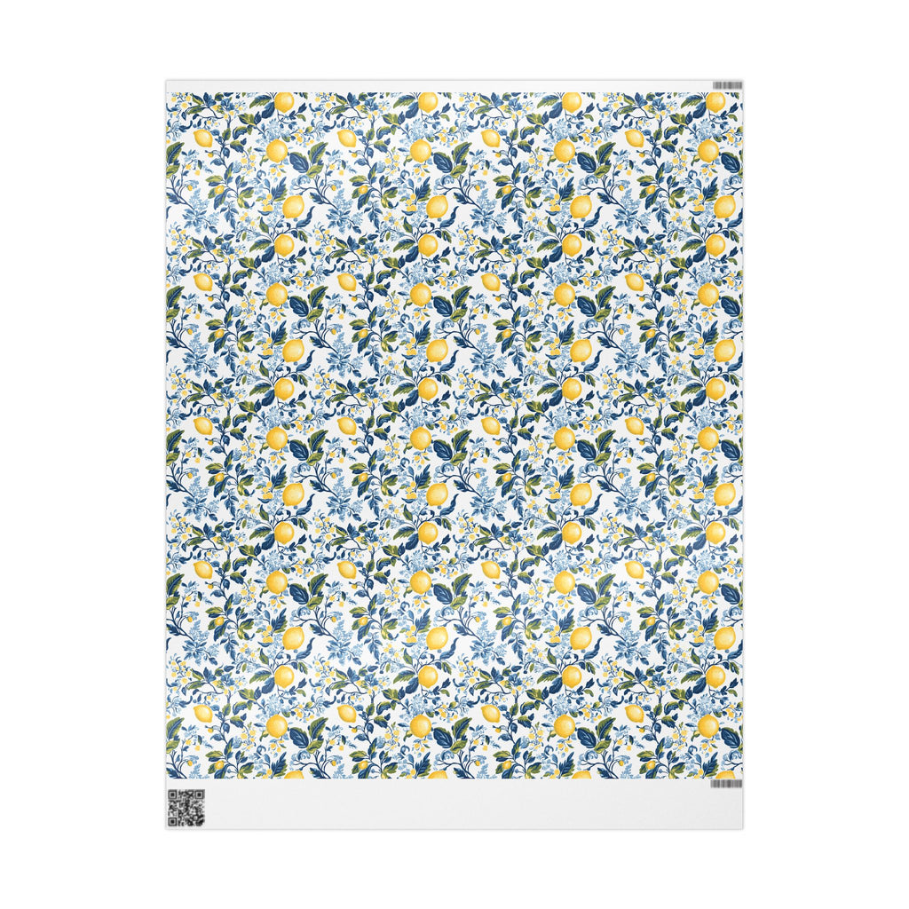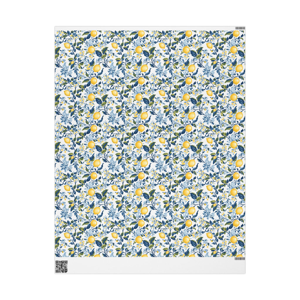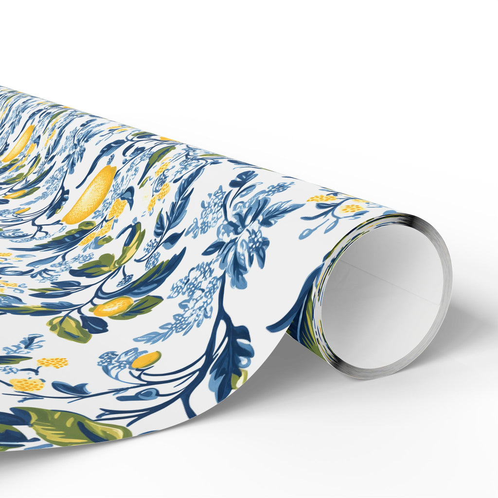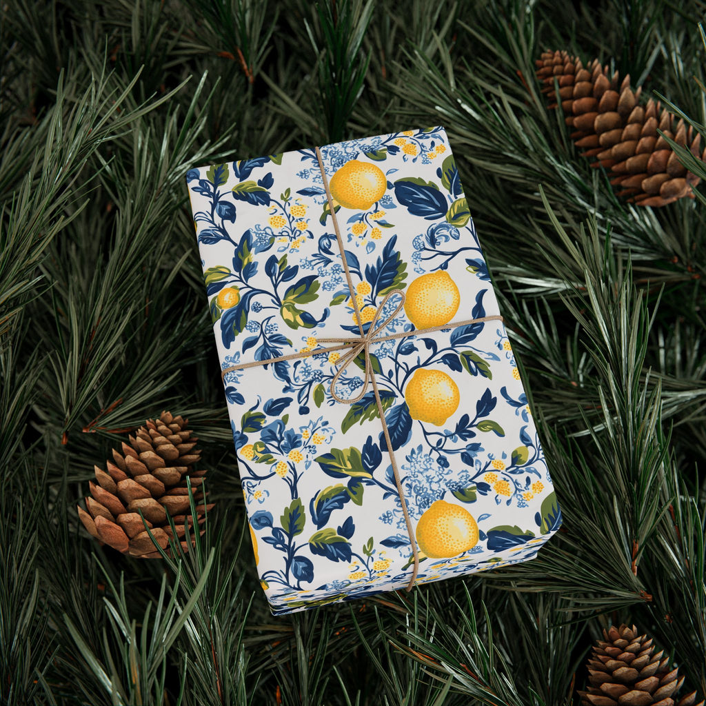 Lemon Wrapping Paper | Mediterranean Floral Gift Wrap for the Holidays, Birthdays