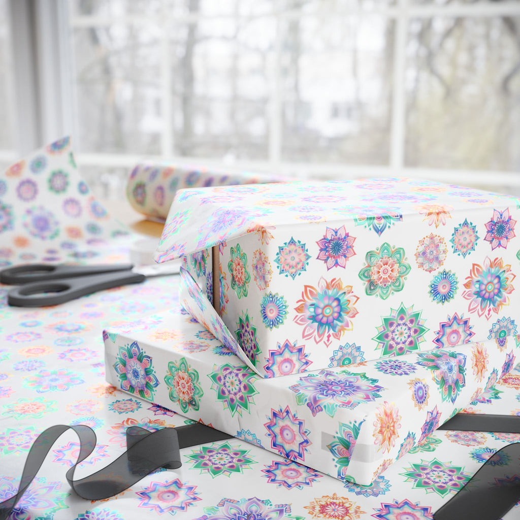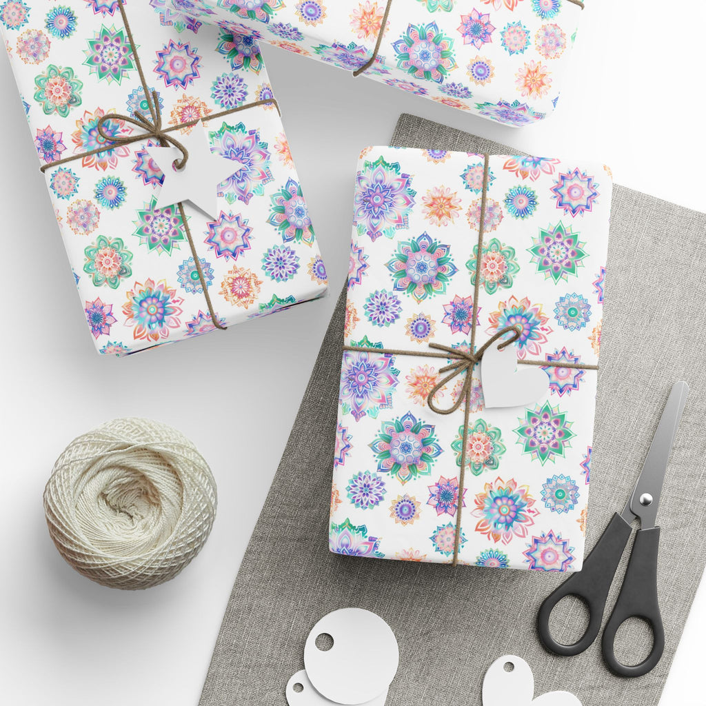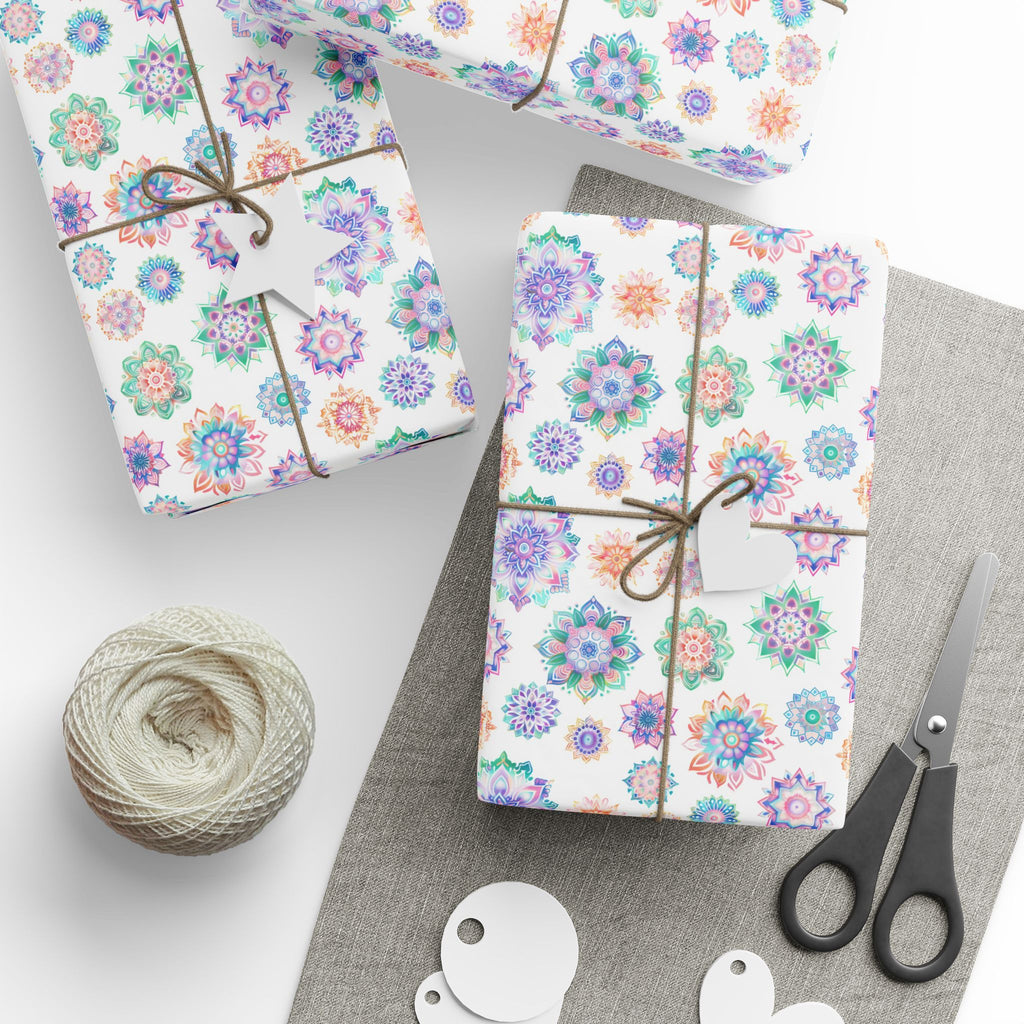 Mandala Wrapping Paper | White Colorful Gift Wrap for the Holidays, Birthdays
