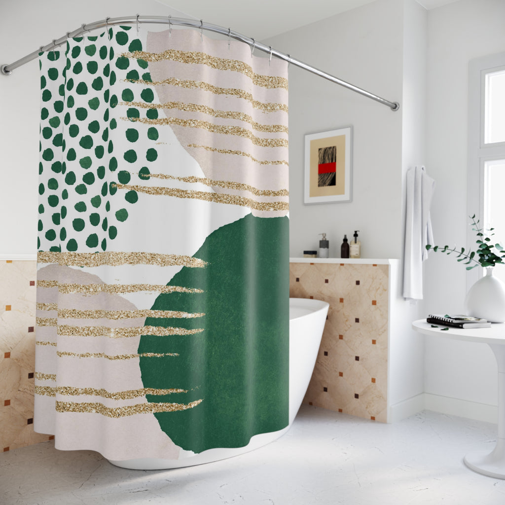 Mid Century Shower Curtain | Abstract Watercolor Green Blush, Beige