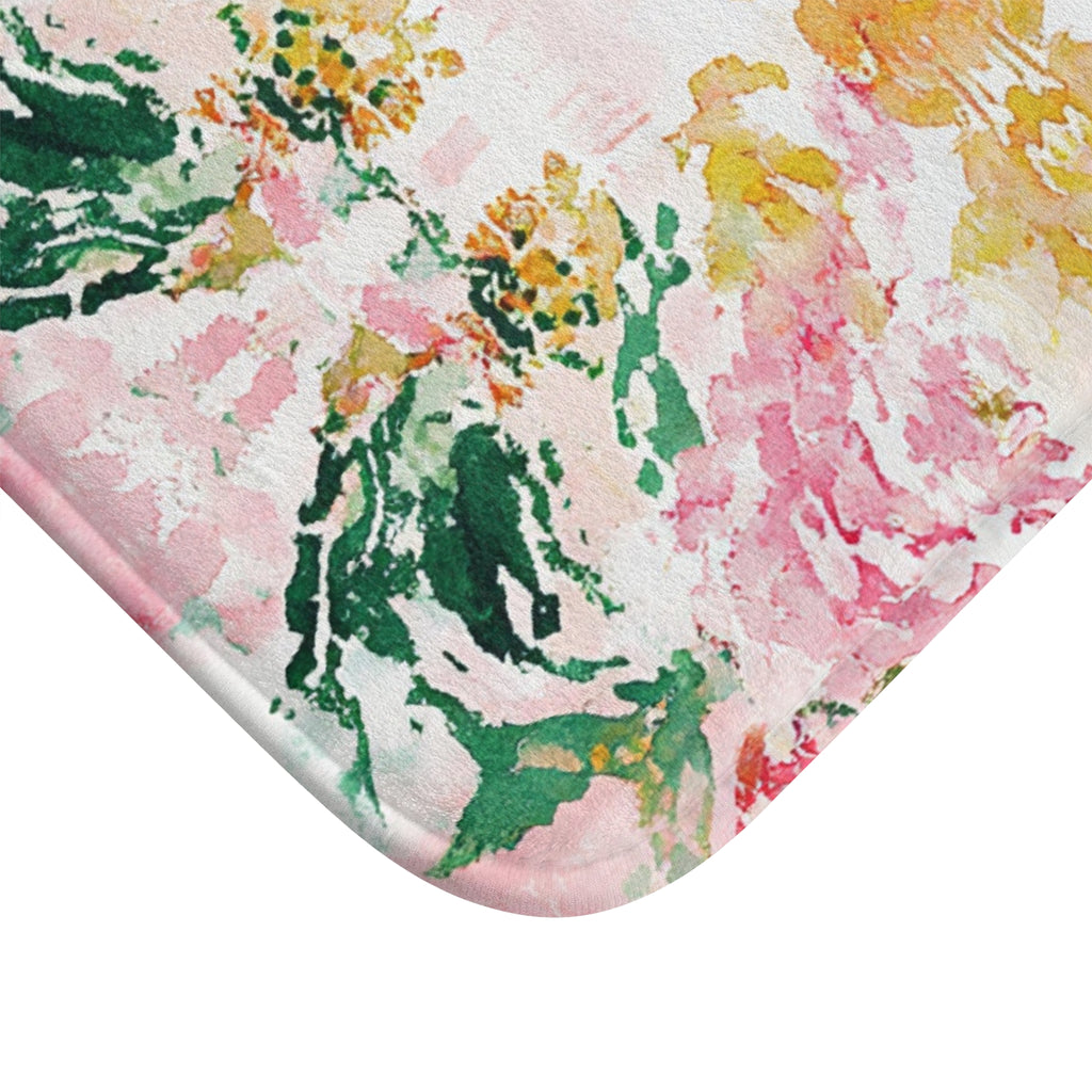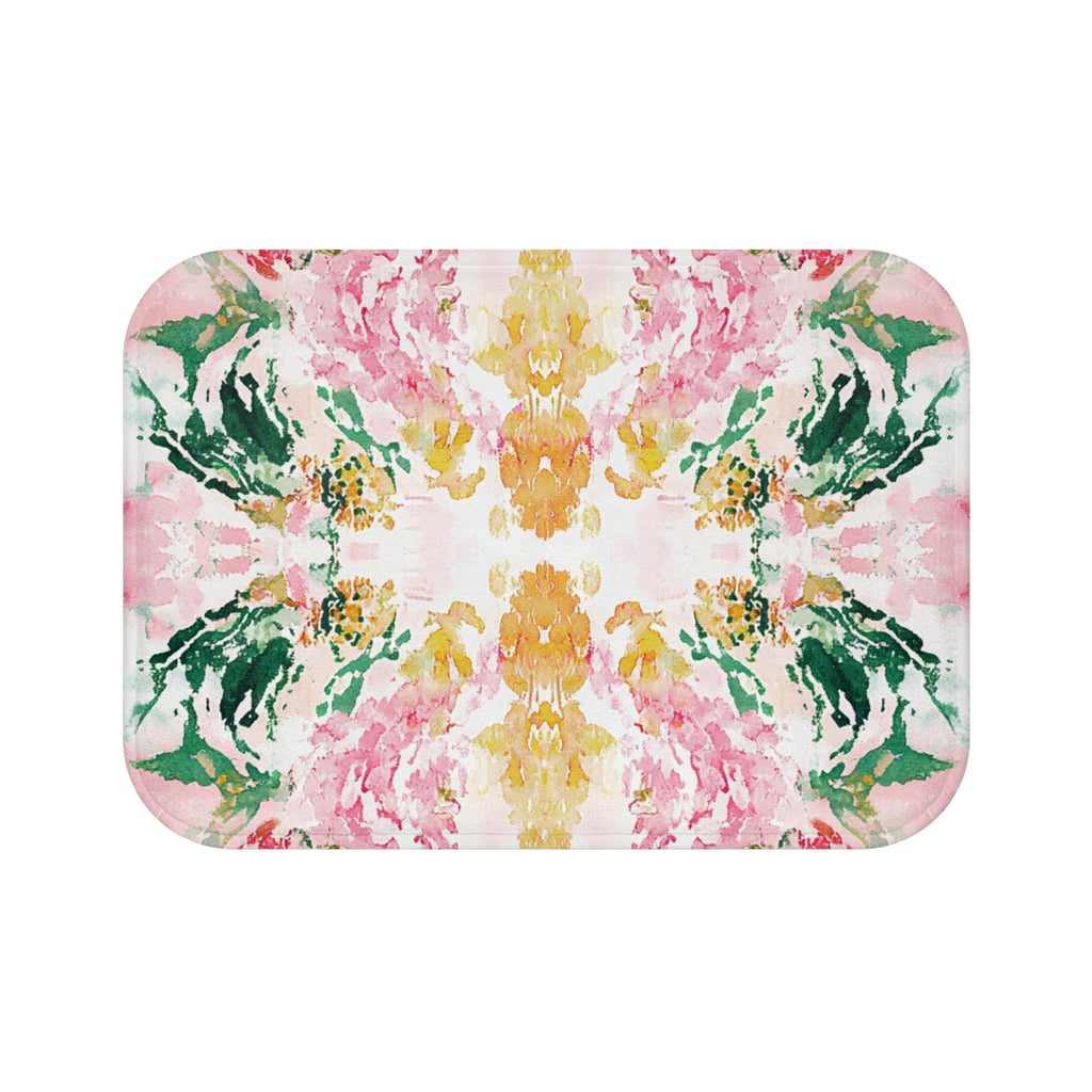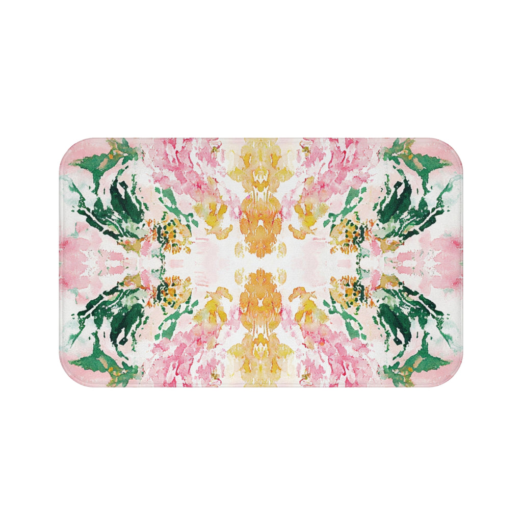 Mirrored Art, Modern Bath Mat | Abstract Pink Green White Kitchen Mat