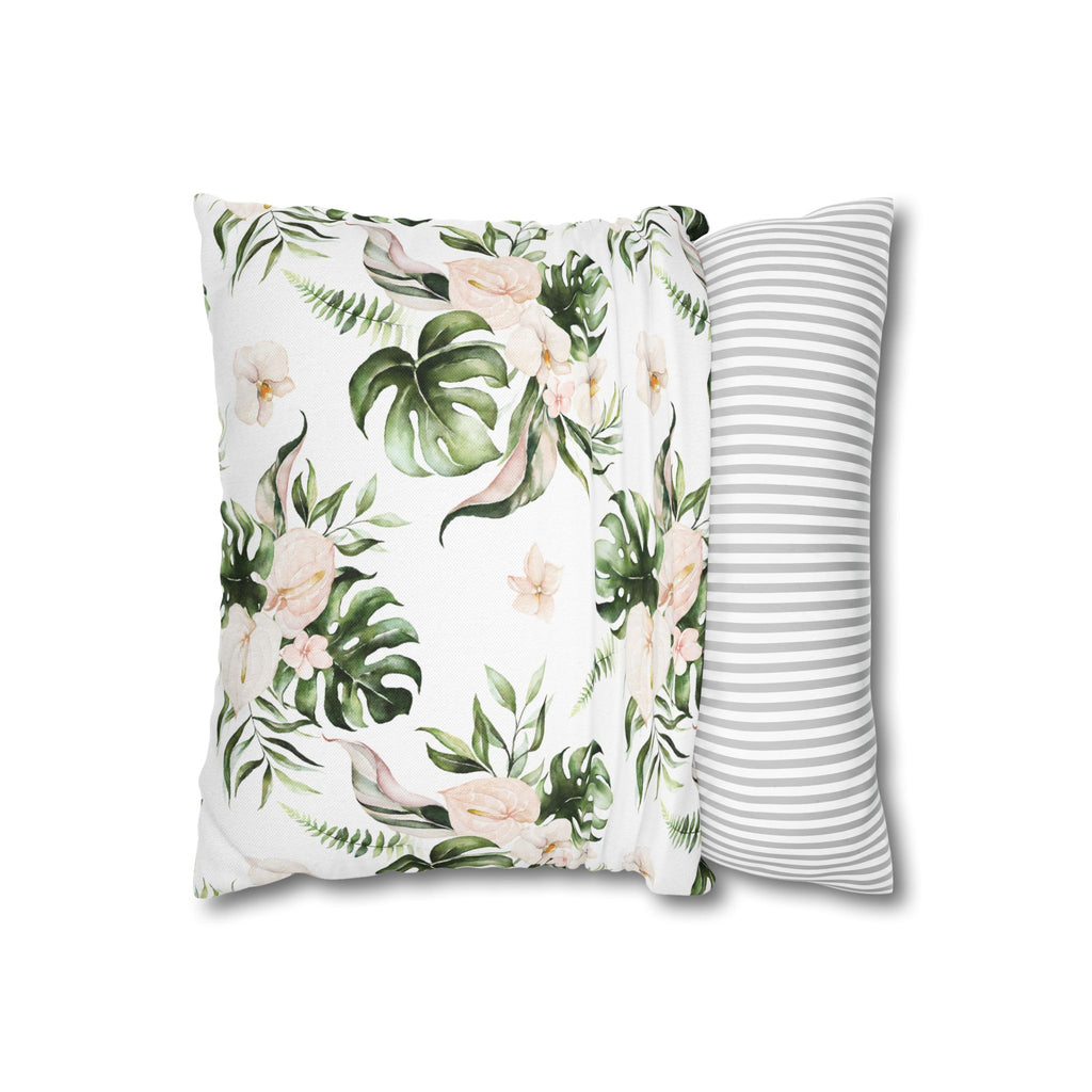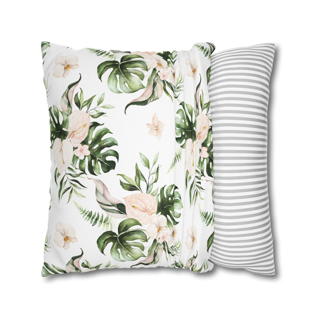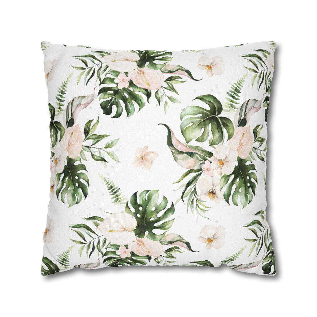 Orchids Floral Pillow Cover | White Green Monstera Tropical Leaves