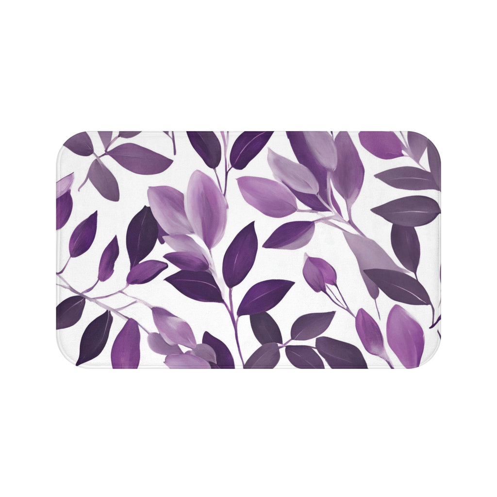 Purple Leaves Bath Mat | White Floral Kitchen Mat