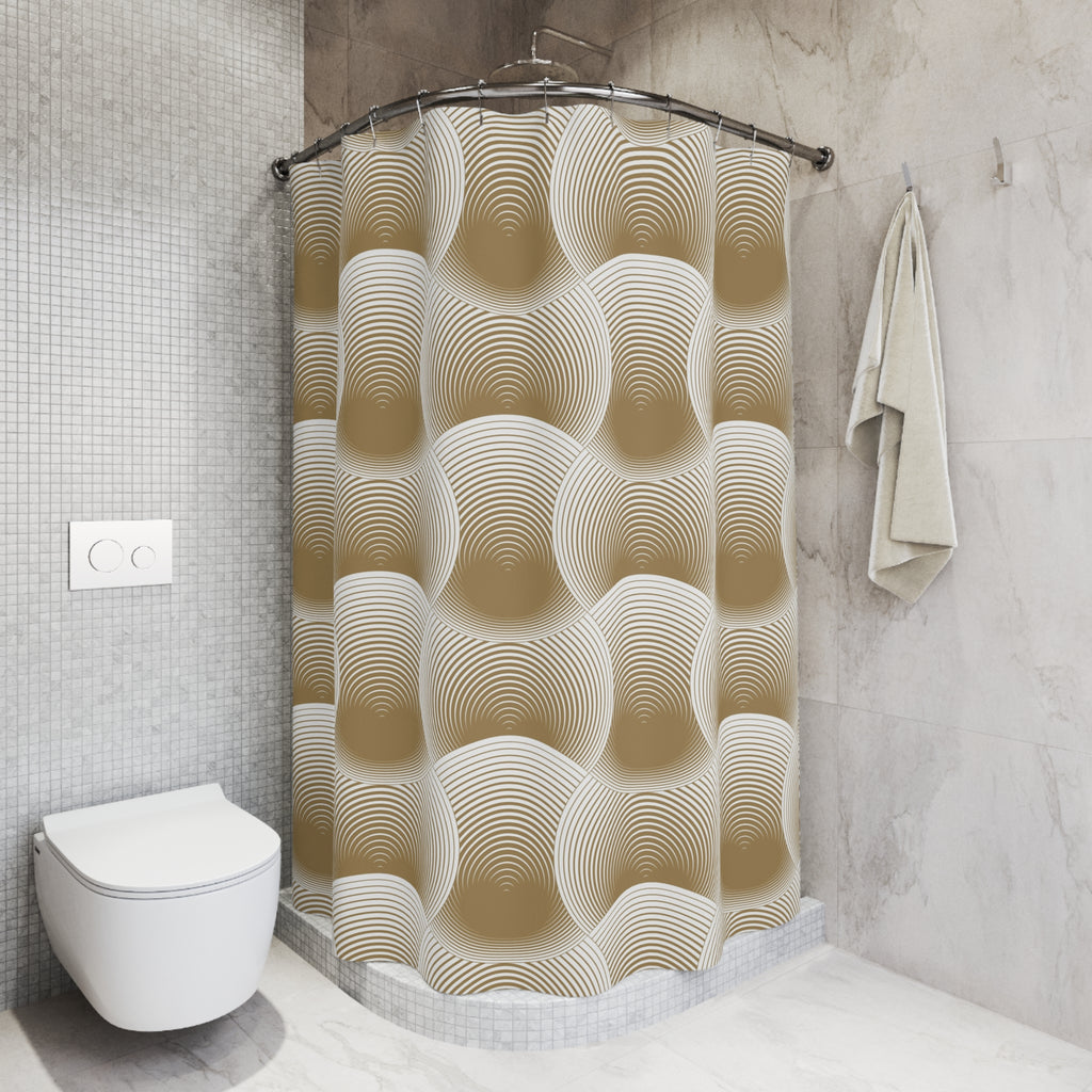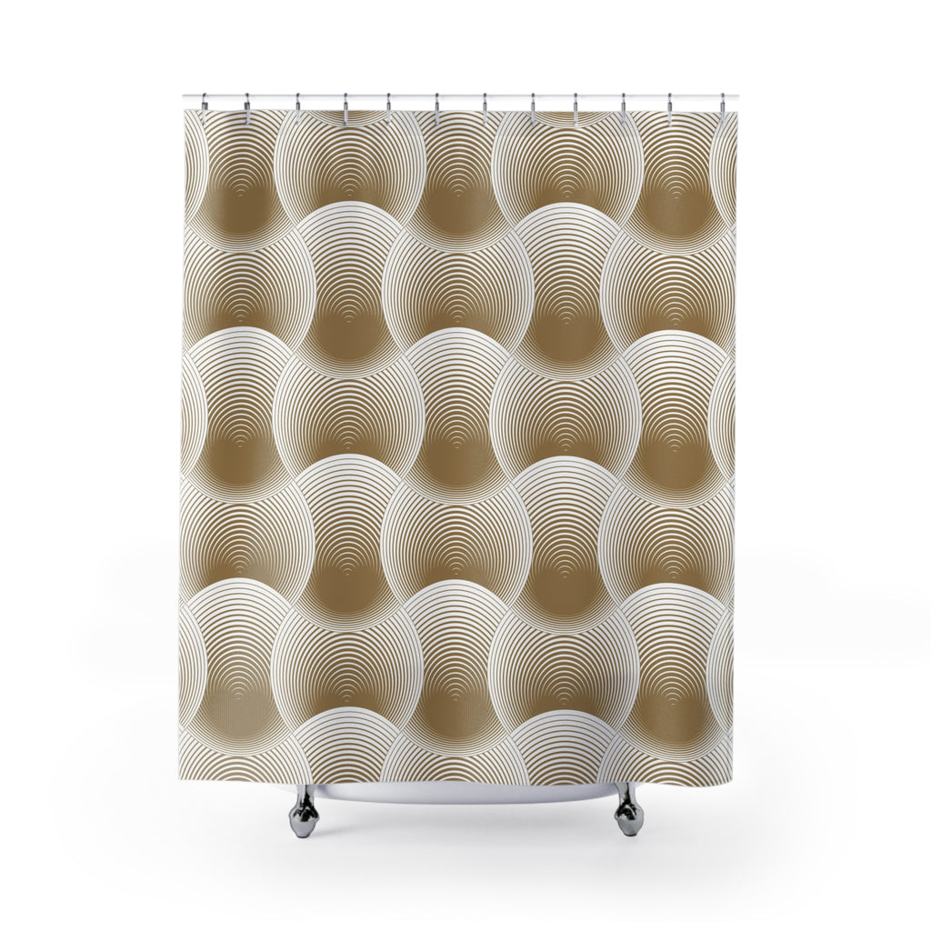 Retro Shower Curtain | Geometric, Beige White Bathroom Decor
