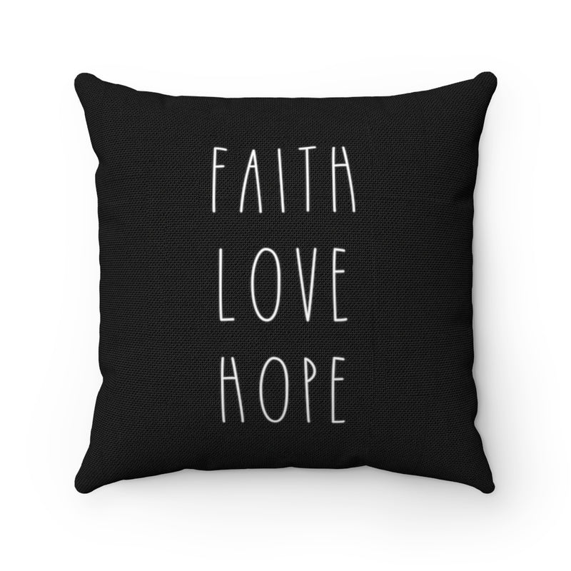 With Saying Pillow Cover | Black White | Faith Love Hope